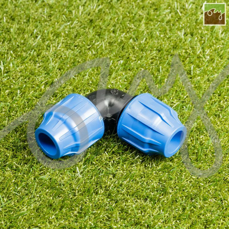 PP koleno Ø20mm, je určené na spájanie PE potrubia pod uhlom 90°, zabezpečuje ľahkú a jednoduchú montáž závlahového potrubia s vonkajším priemerom 20mm. Produkt je vyrobený z kvalitného polypropylénu s presnými rozmermi a dôrazom na tesnenie potrubia. Koleno je určené na vytvorenie kolmých ohybov pri polyetylenových potrubiach pre závlahové systémy, bez zalomenia a tlakovej straty.