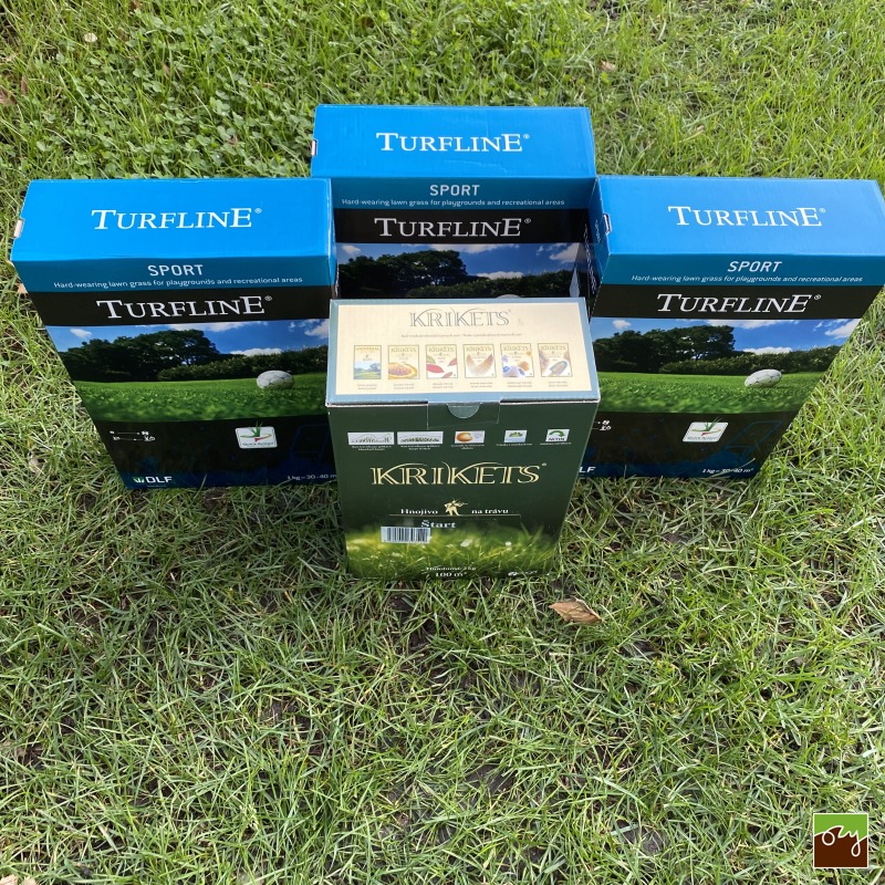 Set 3x trávnej zmesi DLF Turfline Šport 1kg a 1x štartovacieho hnojiva KRIKETS® 2kg predstavuje ideálne balenie na založenie záťažového športového trávnika na ploche 100m2 so základnými živinami na podporu rastu vďaka hnojivu.