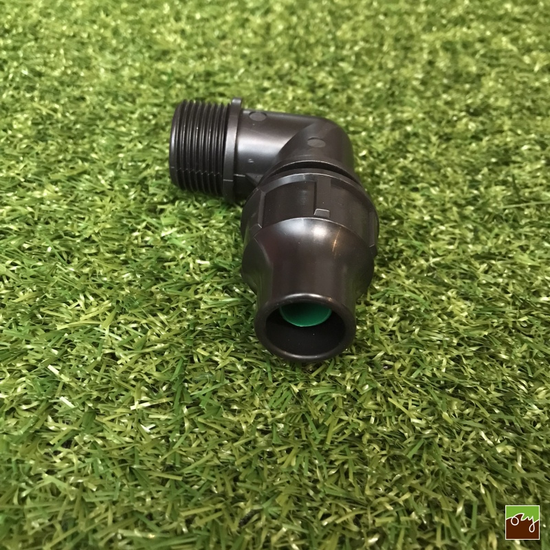 Skrutkovacie kolienko s priemerom Ø16mm a vonkajším závitom 3/4" je určené na spájanie kvapkovacieho alebo LDPE potrubia s rôznymi prvkami závlahy pod uhlom 90°. Kolenom je teda možné vytvoriť kolmý ohyb pri polyetylenových potrubiach pre závlahové systémy. Vďaka skrutkovaciemu prevedeniu tvaroviek je montáž hadíc oveľa rýchlejšia a jednoduchšia.