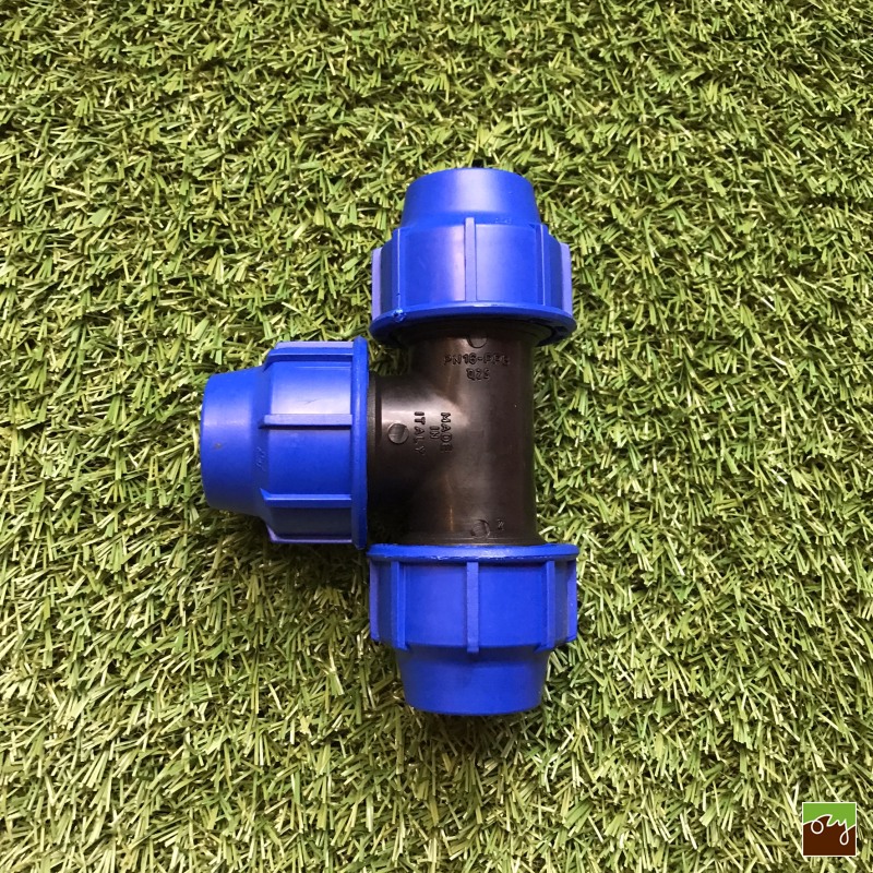 PP T-kus Ø25mm je určený na spojenie troch koncov PE potrubia s vonkajším priemerom 25mm. Zabezpečuje ľahkú a jednoduchú montáž a je vyrobený z kvalitného polypropylénu s presnými rozmermi a dôrazom na tesnenie potrubia. T-Kus je určený na vetvenie polyetylénového potrubia pre závlahové systémy.